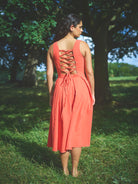 FEATURES: Midi length, open back lacing details, fitted bodice
