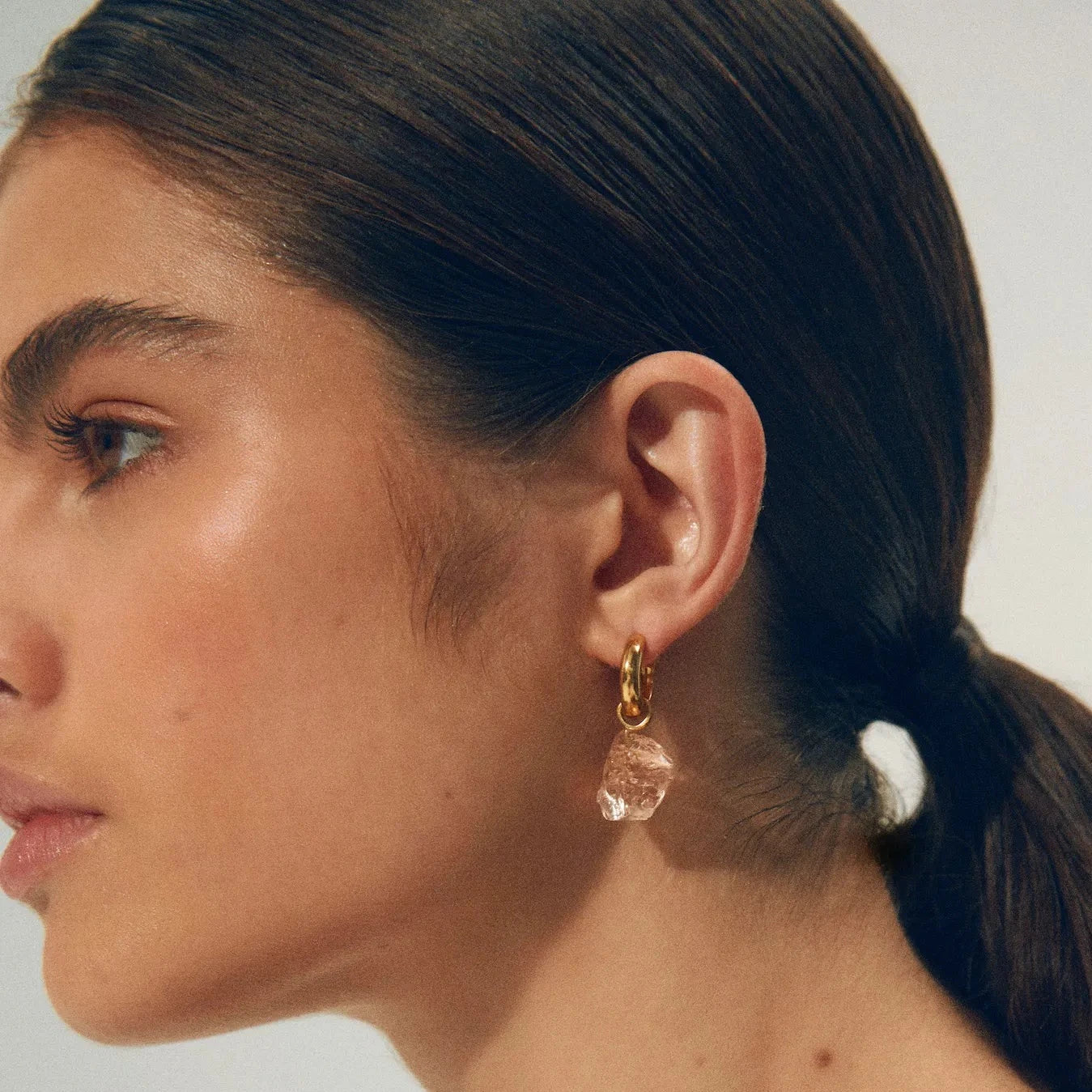 The Shyla Catalina hoops are an easy everyday size. This style comes with raw crystal in a Champagne colour. The rawness of the crystal in its original form without the need for shaping or polishing is beautiful in its own right.