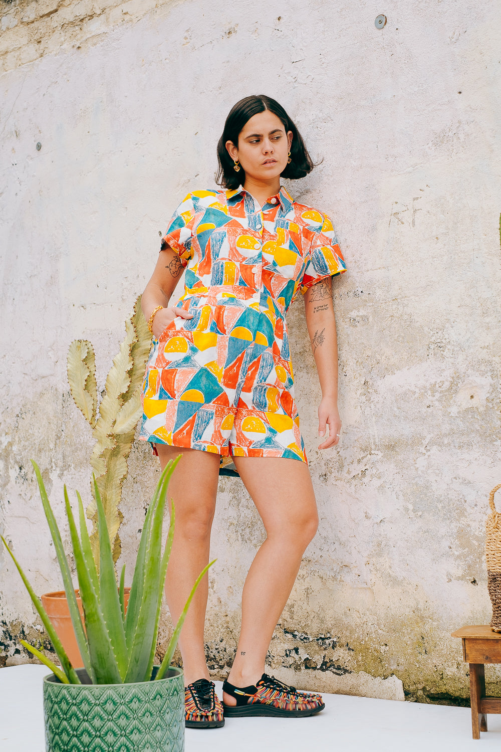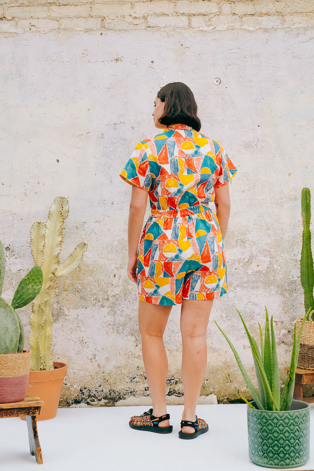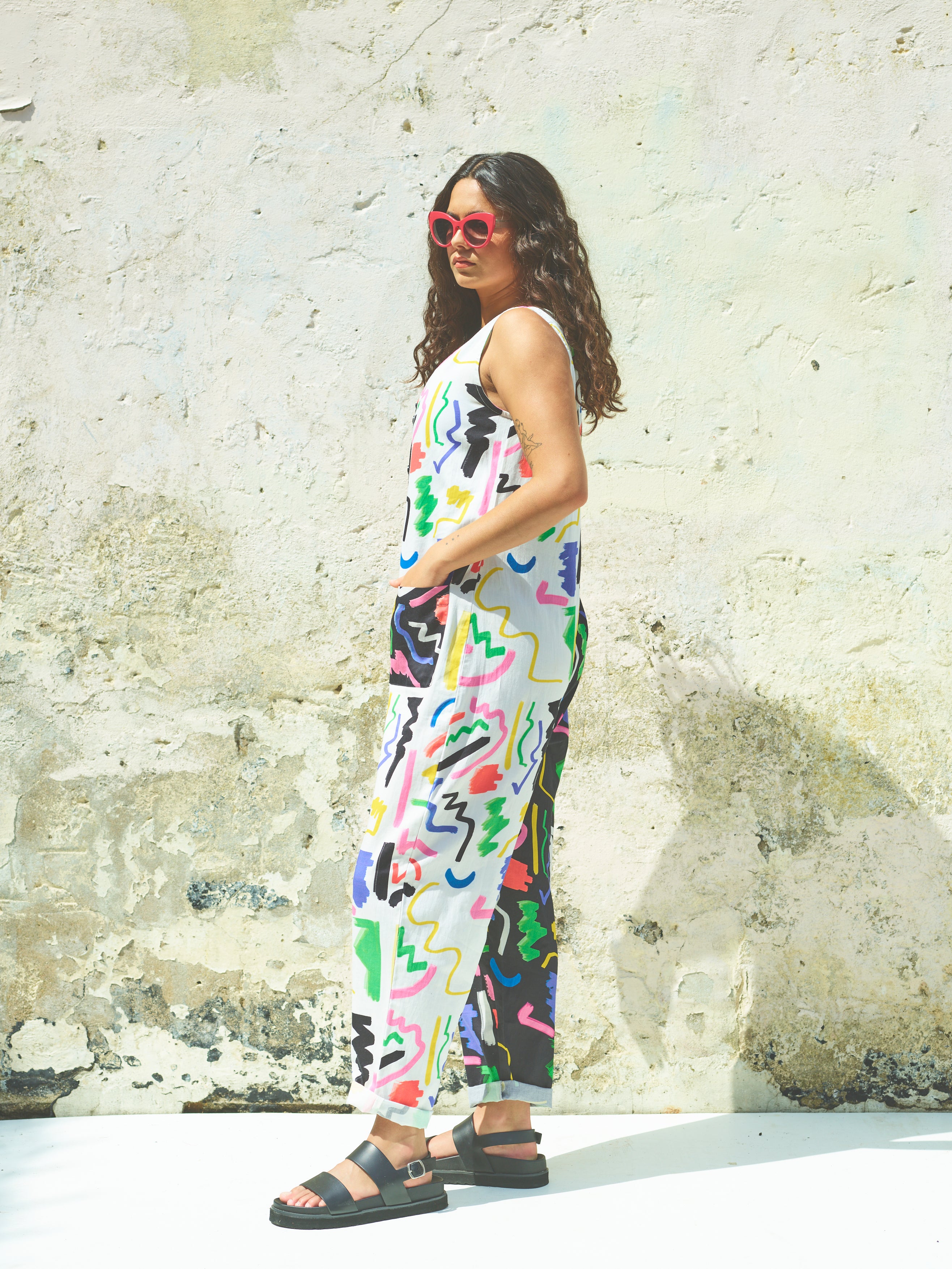 Easy one-piece styles for fuss-free dressing. Basic drill or playful colours and prints, all made from natural fibres.