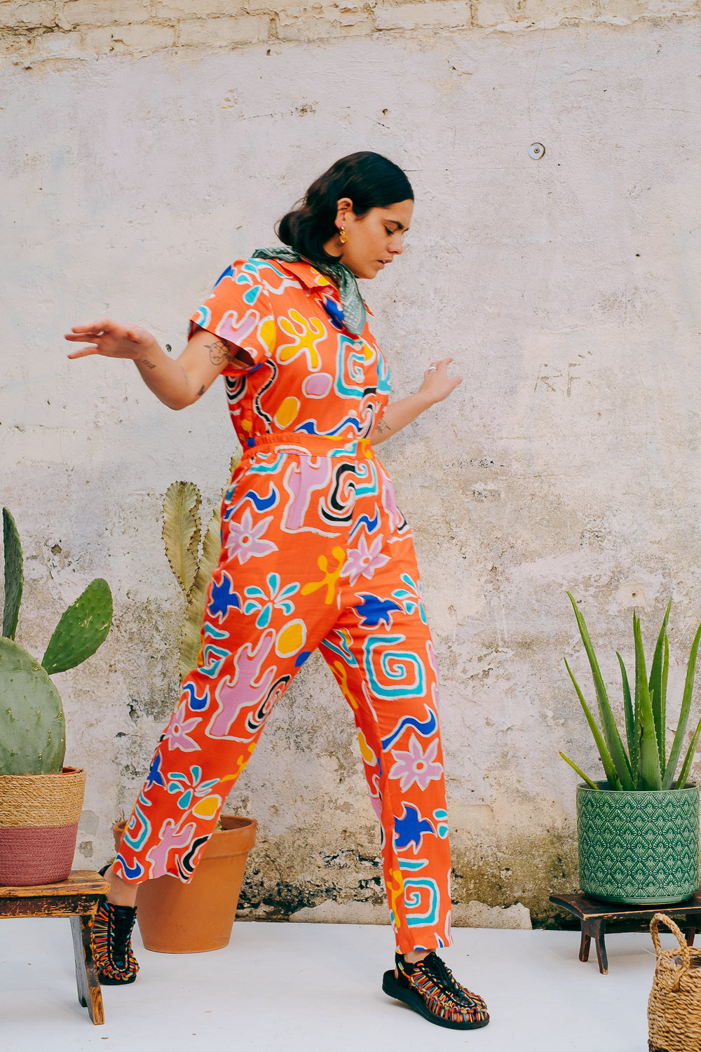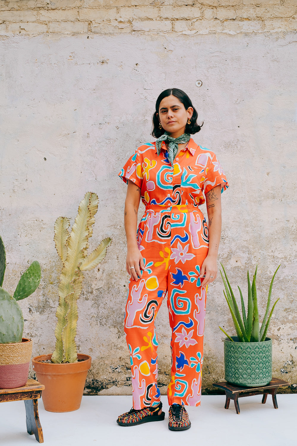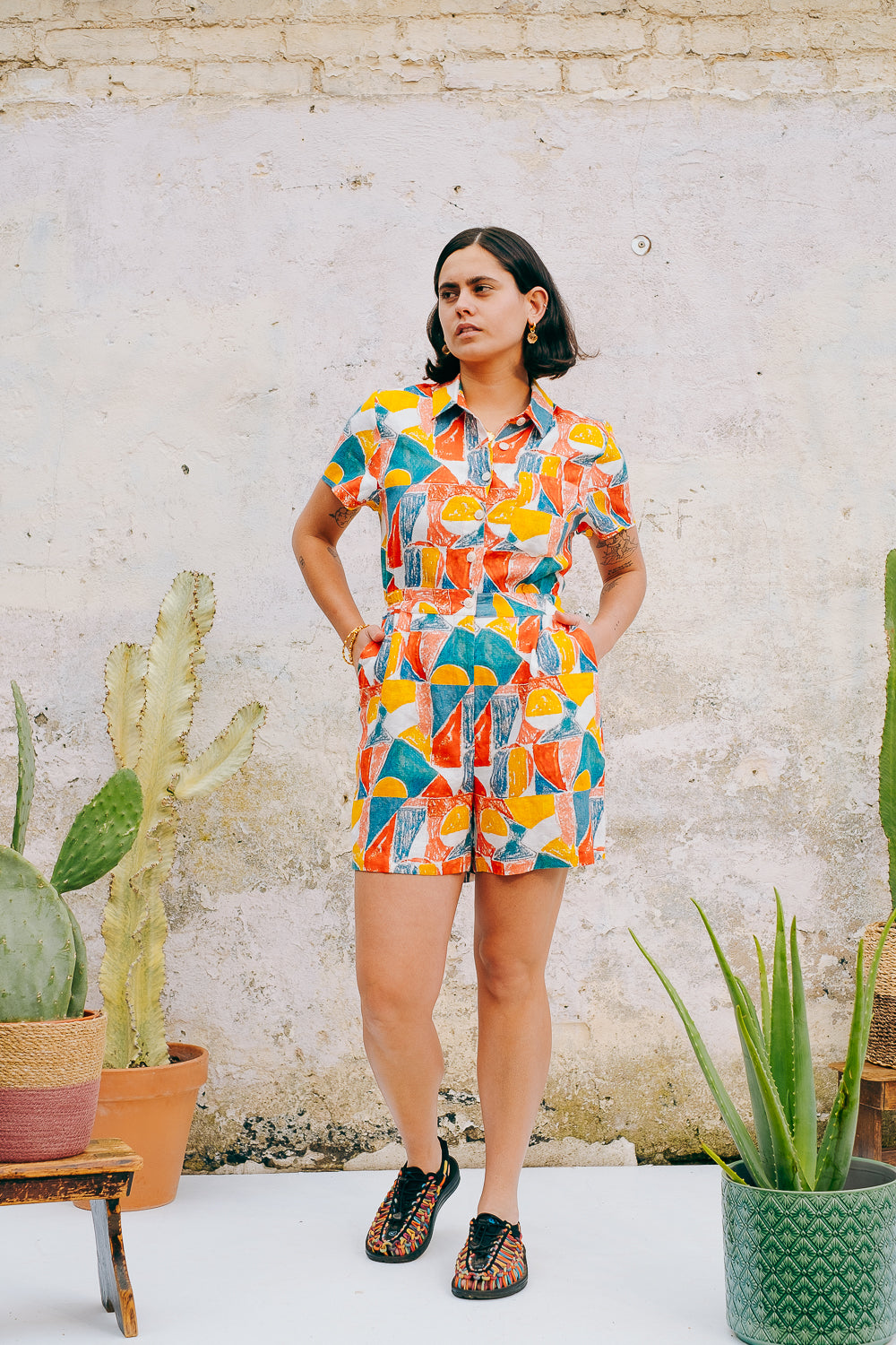Easy one-piece styles for fuss-free dressing. Basic drill or playful colours and prints, all made from natural fibres.