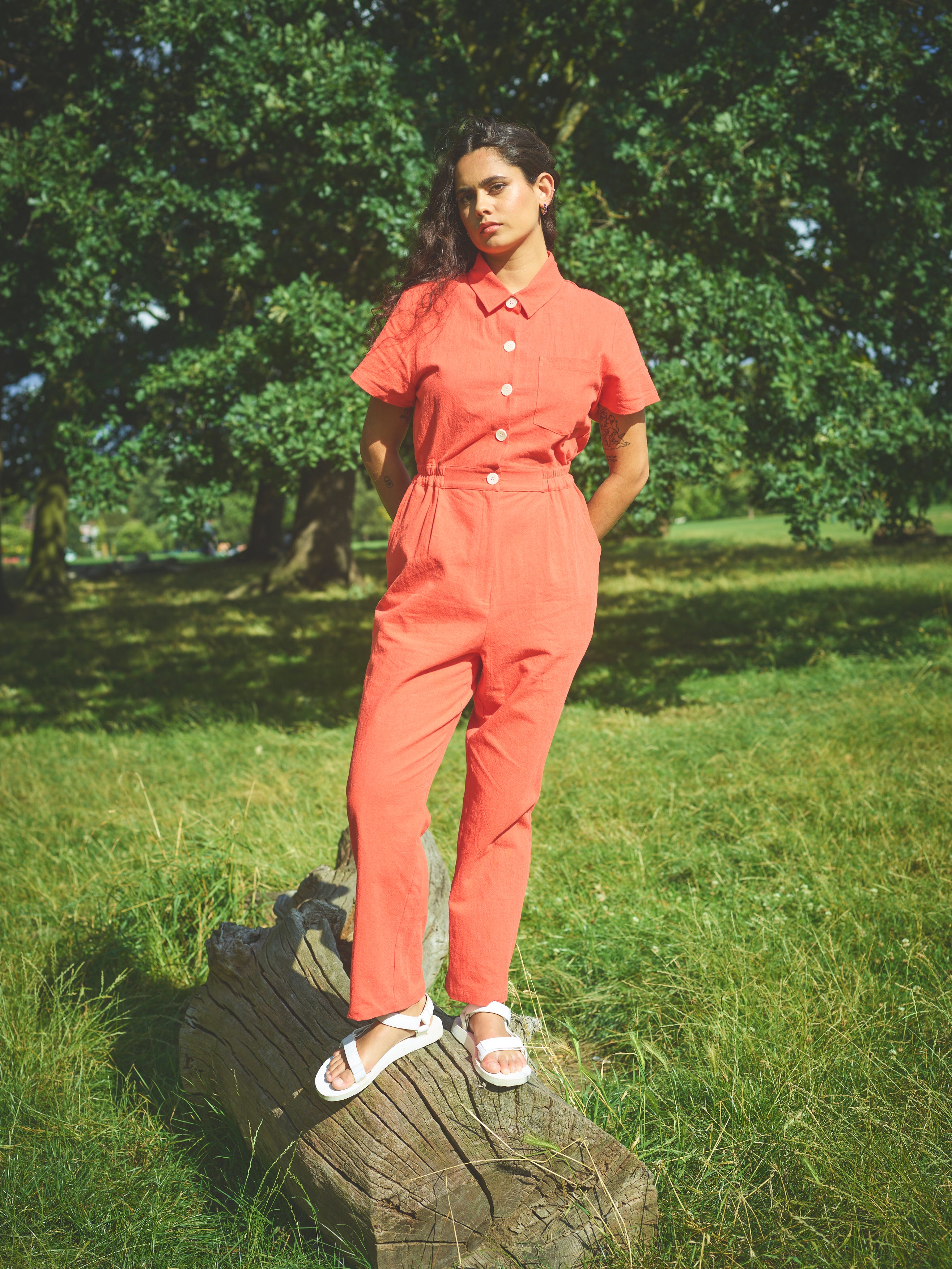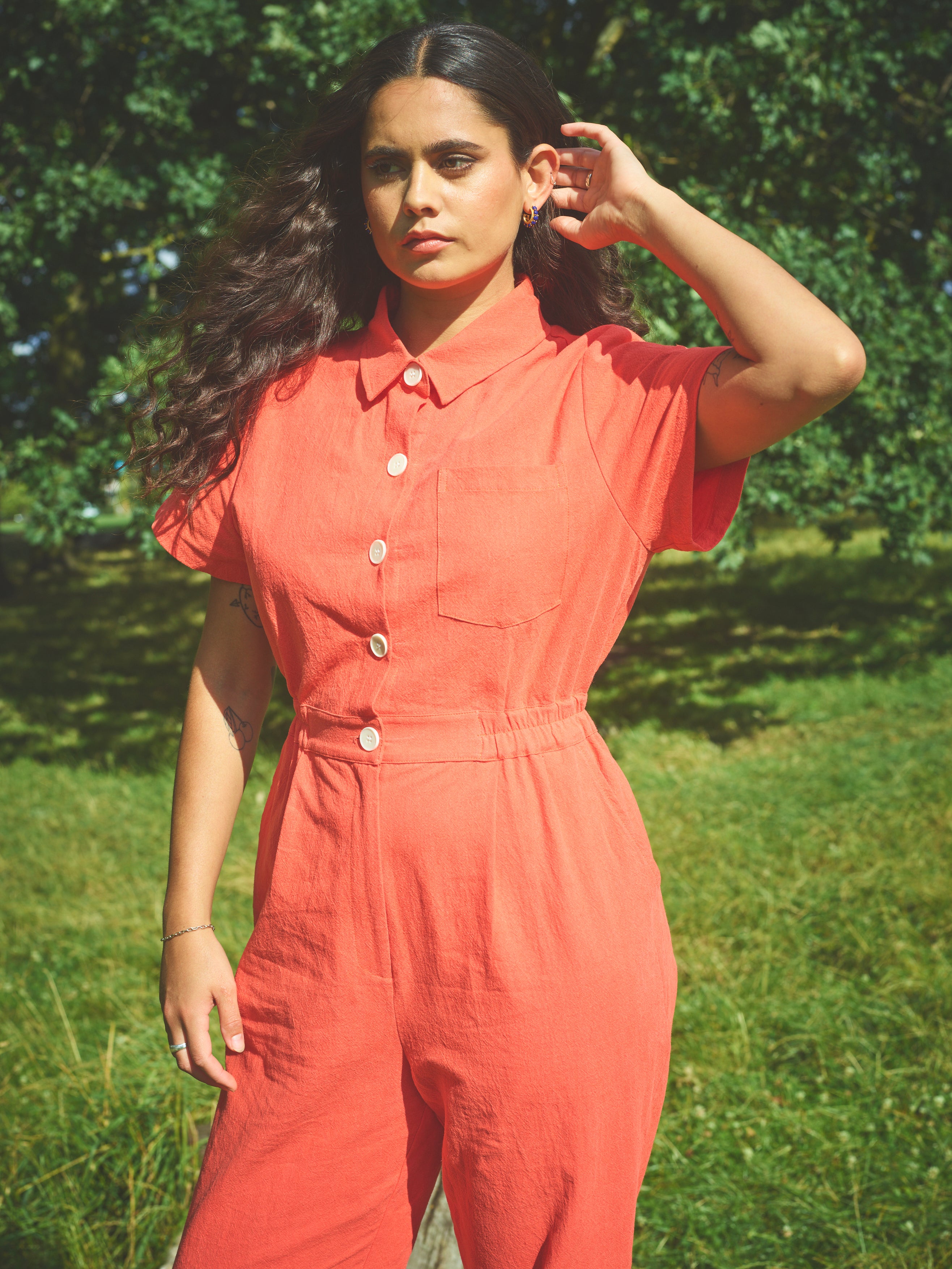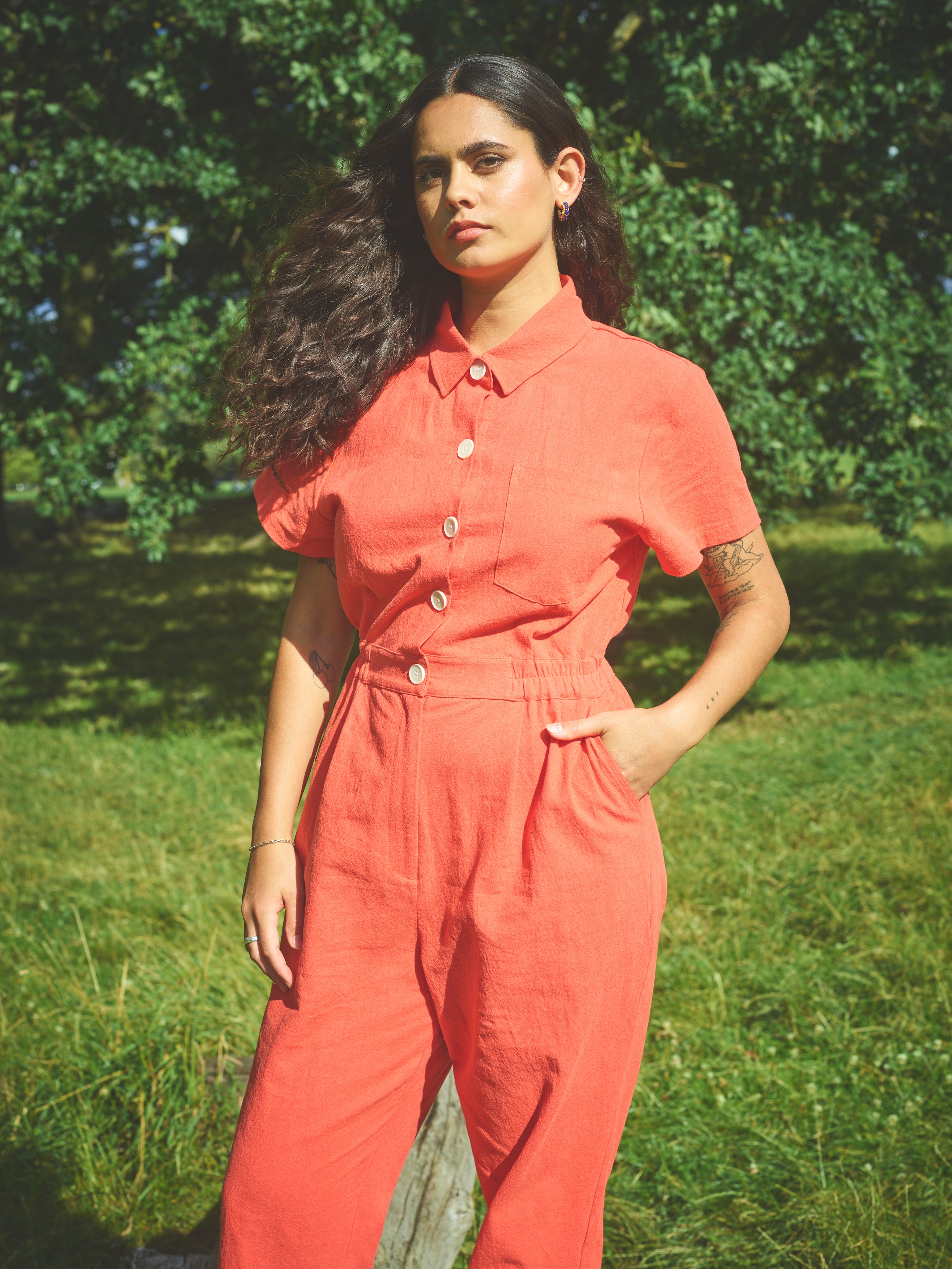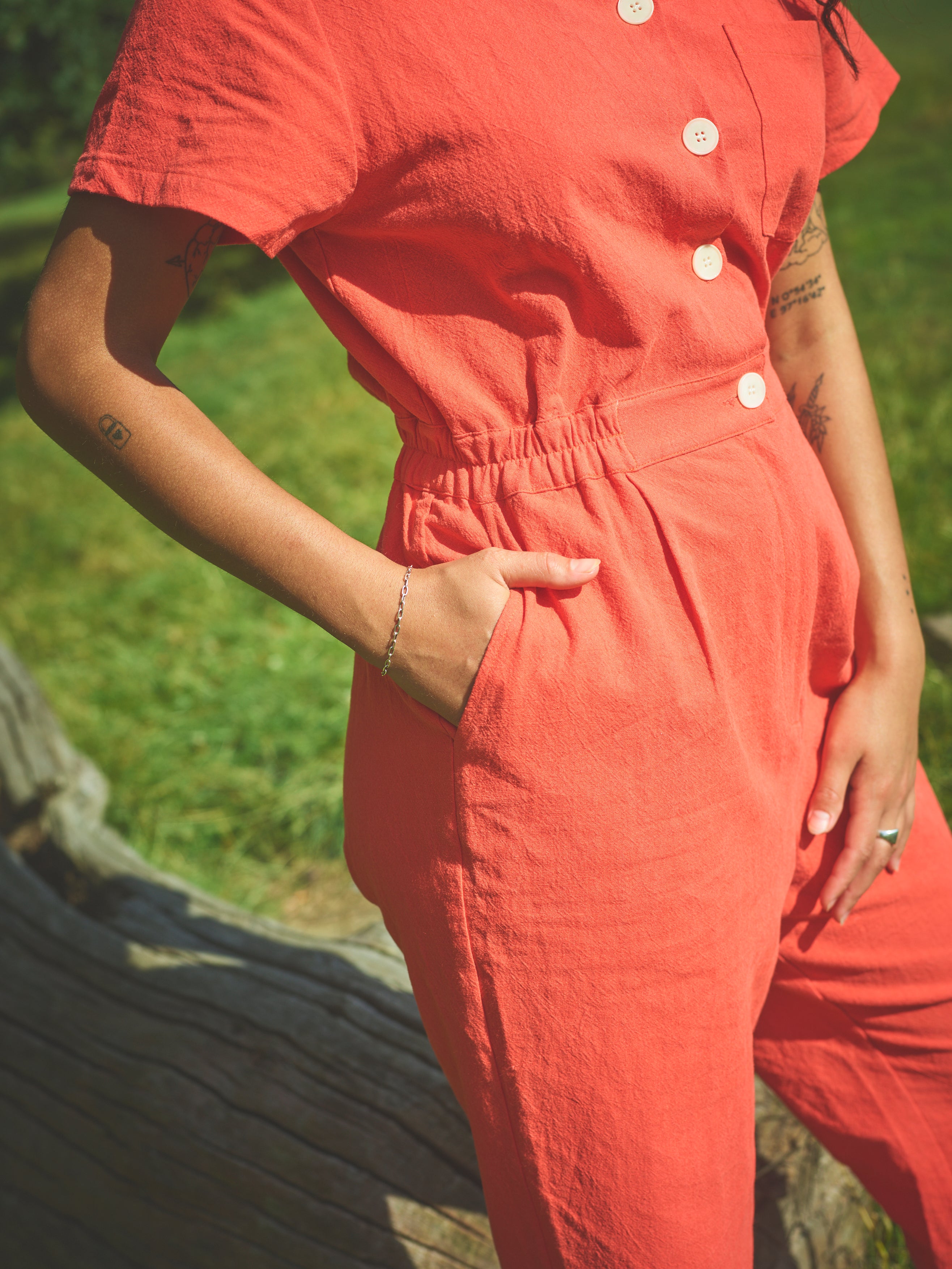 Lowie Cotton Linen Tomato Boilersuit