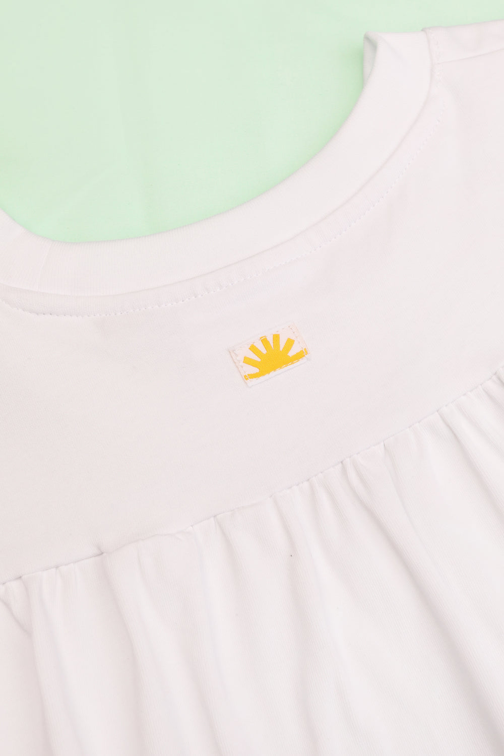 The Peyton Top is a twist on a classic t-shirt with a gathered back yoke, crafted from soft cotton jersey. Finished with our mini sun woven patch logo on the back neck.