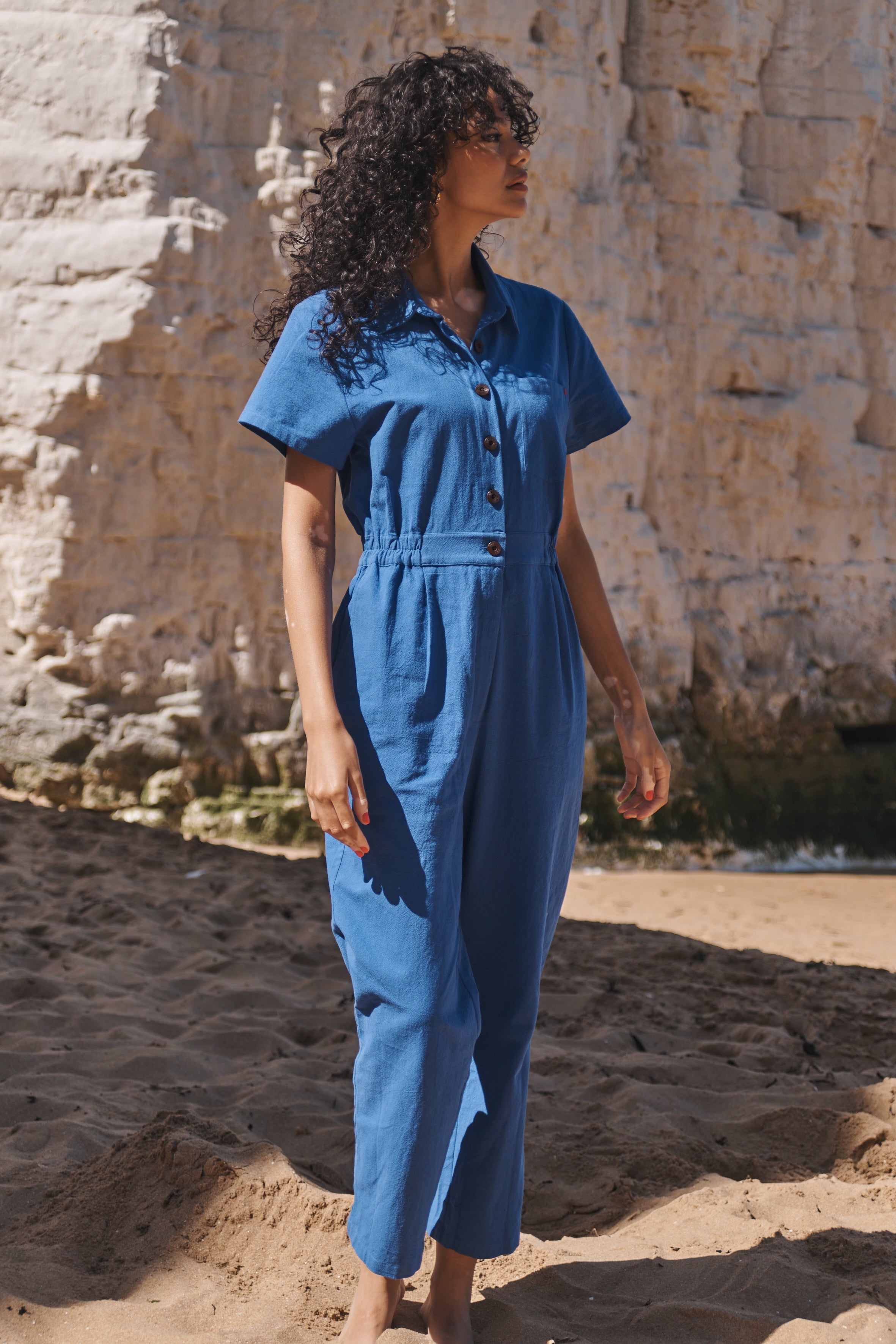 Lowie Cobalt Blue Cotton Linen Boilersuit
