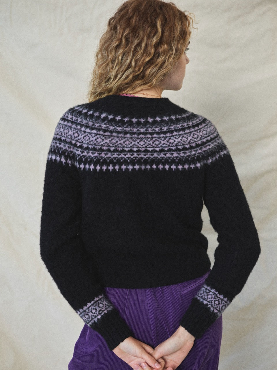 Lowie’s much-loved snow jumpers are made in Peterhead, a small fishing port in Scotland, by one of the few remaining knitwear suppliers in the UK. Knitted from 100% Scottish spun lamb’s wool with traditional Fair Isle style knit design around the neckline and cuffs.