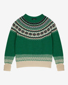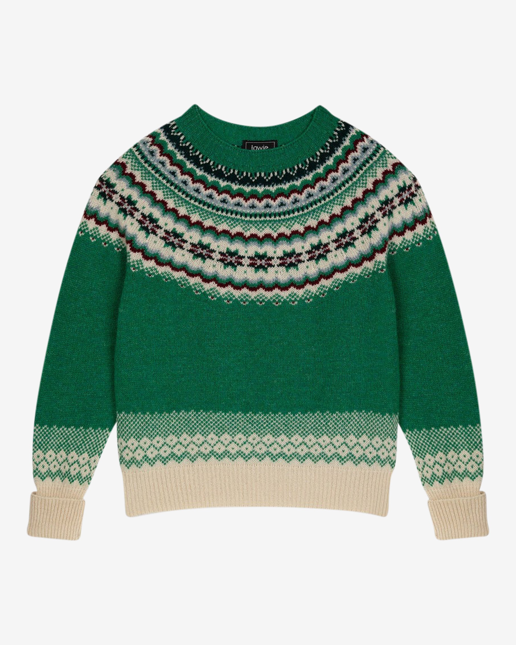 FEATURES: Relaxed silhouette, ribbed hemline, fairisle motif.