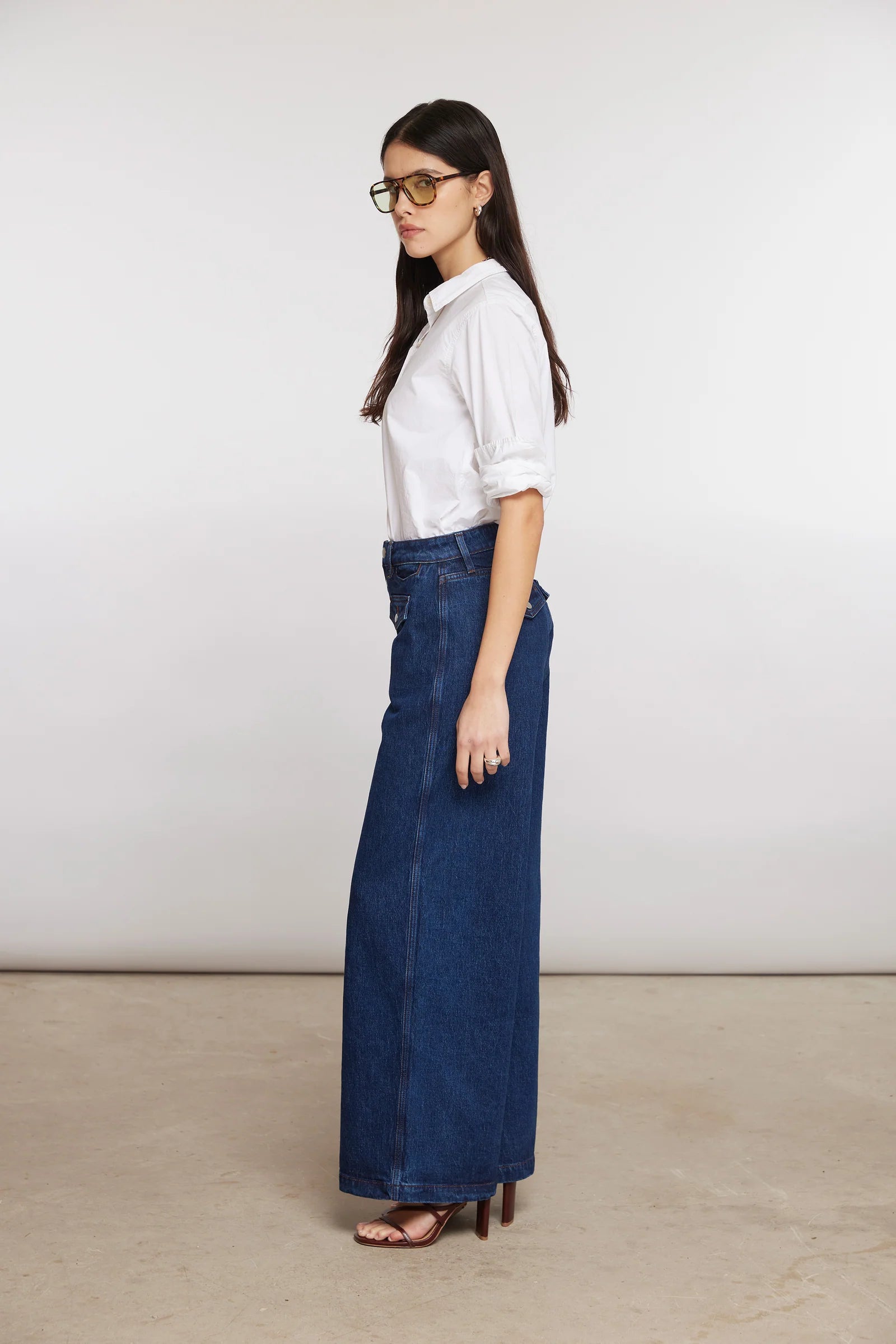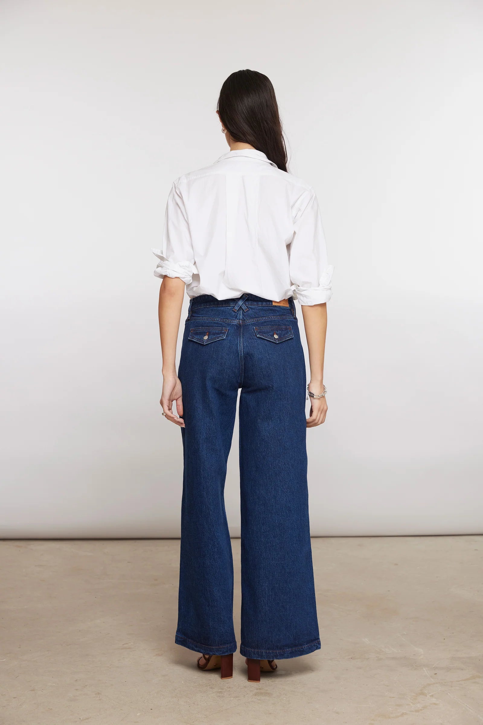 A retro-inspired wide-leg jean with a flattering mid-rise and flap pockets for a nod to vintage style. Soft, comfortable fabric with just the right stretch makes it effortless to wear from day to night.
