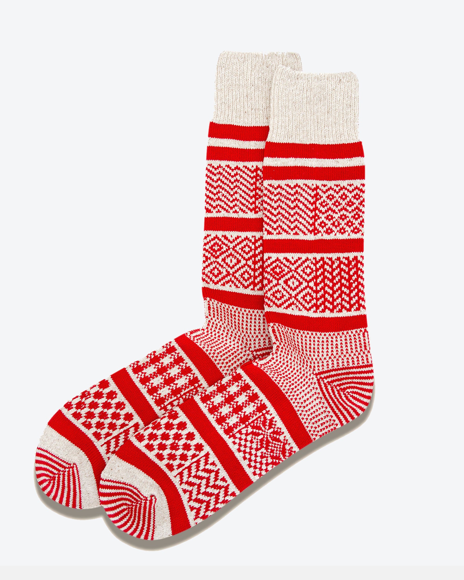 ROTOTO Ivory + Red Multi Jaquard Socks