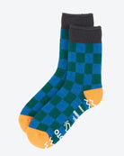 A pair of checkerboard knitted room socks, made in Japan by the masterful sock suppliers at Rototo. The acrylic-wool blend provides elasticity and warmth to these insulating home/tent-suitable socks, with an anti-slip Rototo graphic printed on the sole to keep you sure footed as well as cosy.