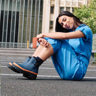 The Tully Boot’s distinct silhouette is a fashion forward take on the classic wellington boot! Playful and urban; Tully nods to 90s nostalgia with a chunky platform-style sole and an extended, wrap around neoprene cuff.
