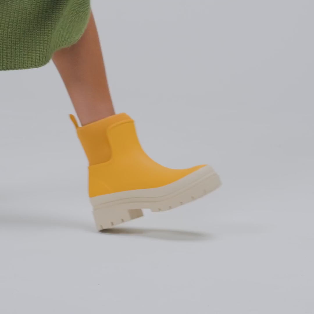 The Tully Boot’s distinct silhouette is a fashion forward take on the classic wellington boot! Playful and urban; Tully nods to 90s nostalgia with a chunky platform-style sole and an extended, wrap around neoprene cuff.