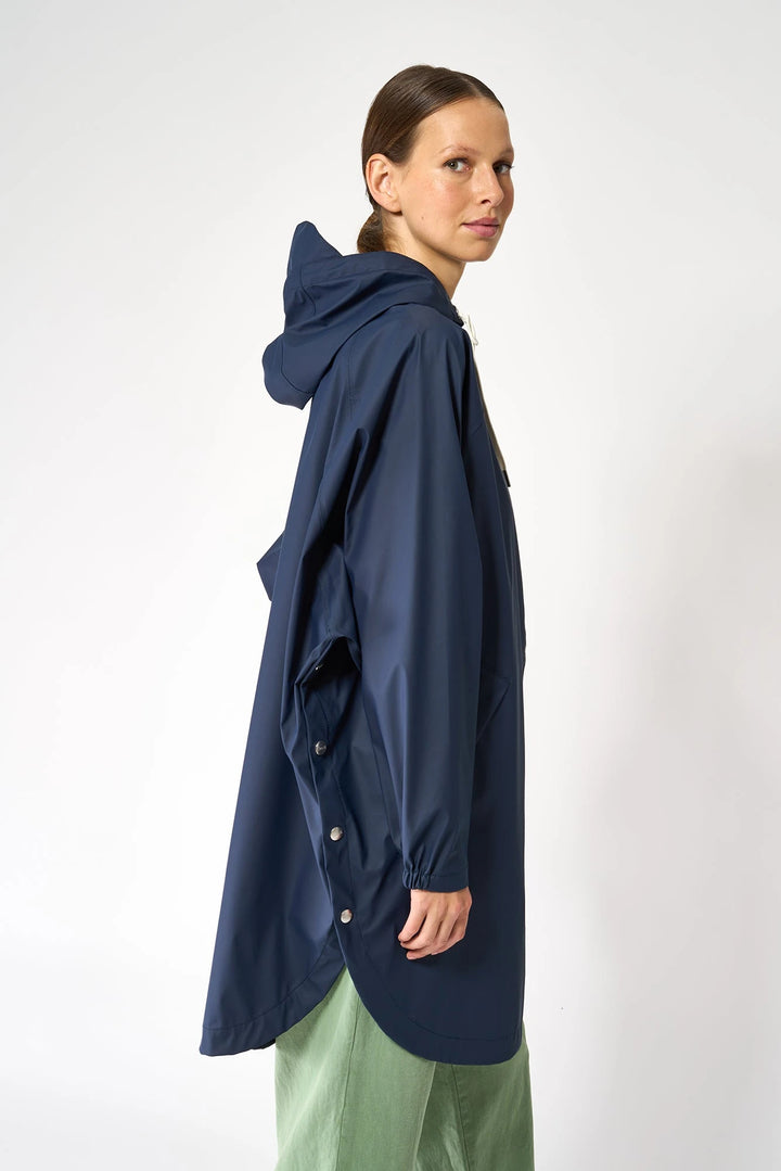 The waterproof PU vand coat from rainwear experts Tantä. Lightweight and comfortable the Vand raincoat has a batwing shape with snap popper fastenings down the sides to enable easy movement. Smart insulation is breathable and keeps you warm in the cold and cool in the hear. All seams are taped and the zip is also waterproof.