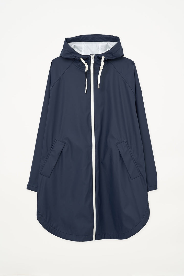 FEATURES: 100% water resistant (4000 mm water resistance), sealed seams, sealed waterproof zipper on front side, drawstring hood with built-in cap and stand-up collar, two hand pockets with concealed zippers, underarm grommets, elasticized sleeve cuffs, lining pocket