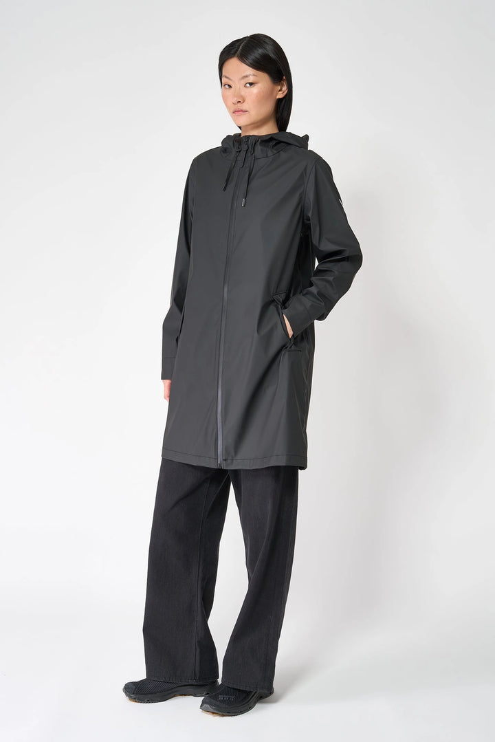 Designed for daily use in transitional seasons, the Nuovola rain jacket is crafted from our iconic PU fabric and it features a pleat across the back that provides a unique a-shaped fit. Mid-thigh length adds coverage and is complemented by a taped zip through front and wind cuffs for extra protection against unpredictable weather.