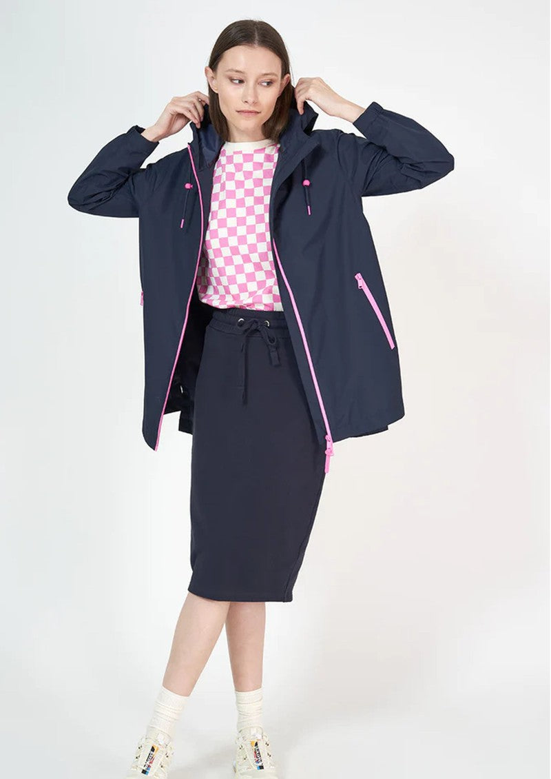 Designed to go anywhere and protect against all wet weathers, introducing the Reenbui Jacket, designed in a classic navy hue. Tanta was born in the rainy Basque Country of Spain - they believe products crafted from durable materials with timeless designs are the most sustainable solution. This particular style is crafted from a waterproof recycled polyester and is fully seam taped with dual slider front zipper, vertical back cut outs and side slits for ultimate comfort.