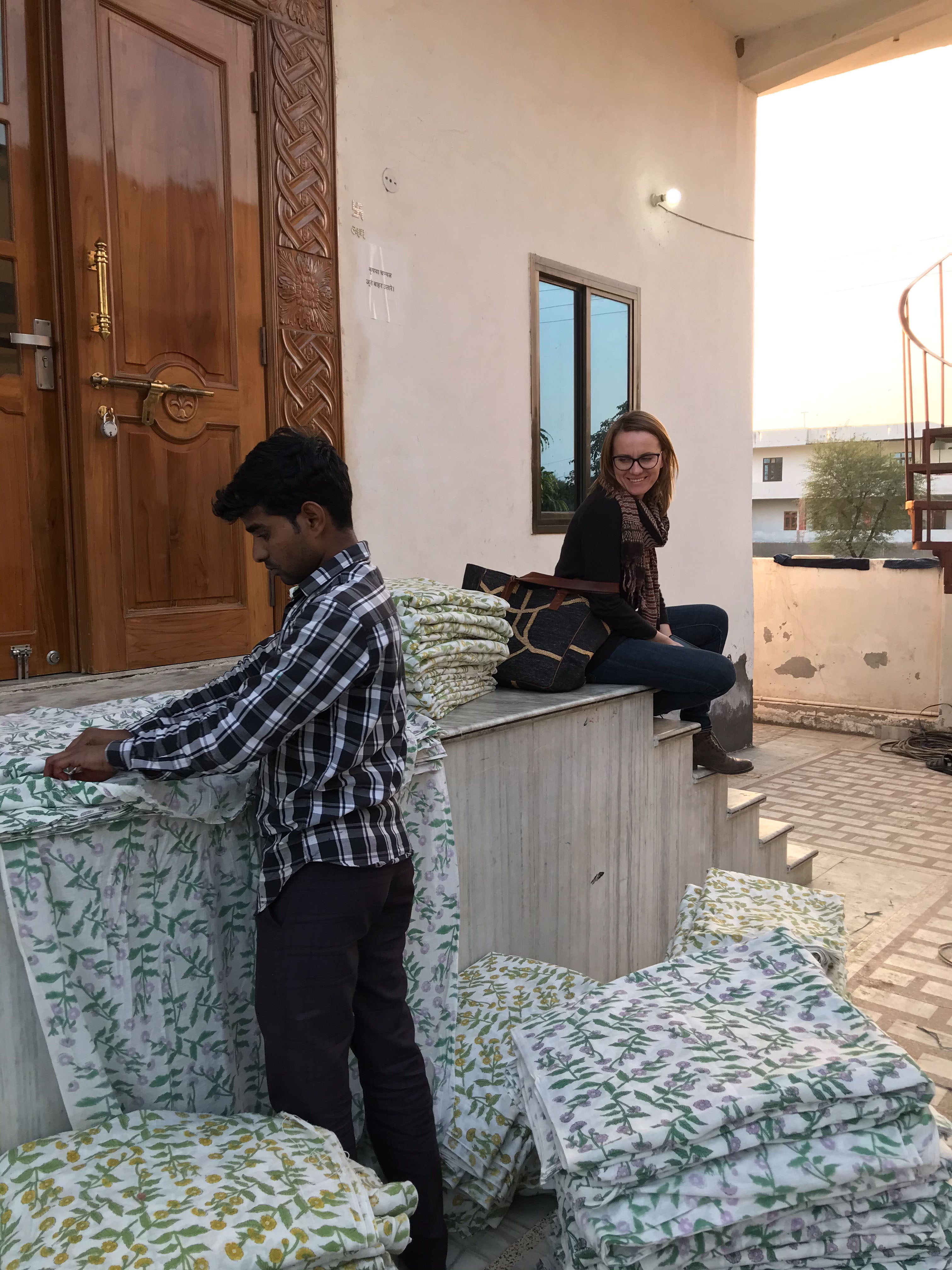 Craft is integral to Lowie's identity. For parts of our collection that feature block printing, appliqué, or screen printing, we collaborate with Sumiran. Passed down through generations, this small, family-run workshop with 30 employees produces our printed, handwoven and organic cotton pieces. Together, we continuously explore innovative ways to increase sustainability and traditional crafts in our processes.