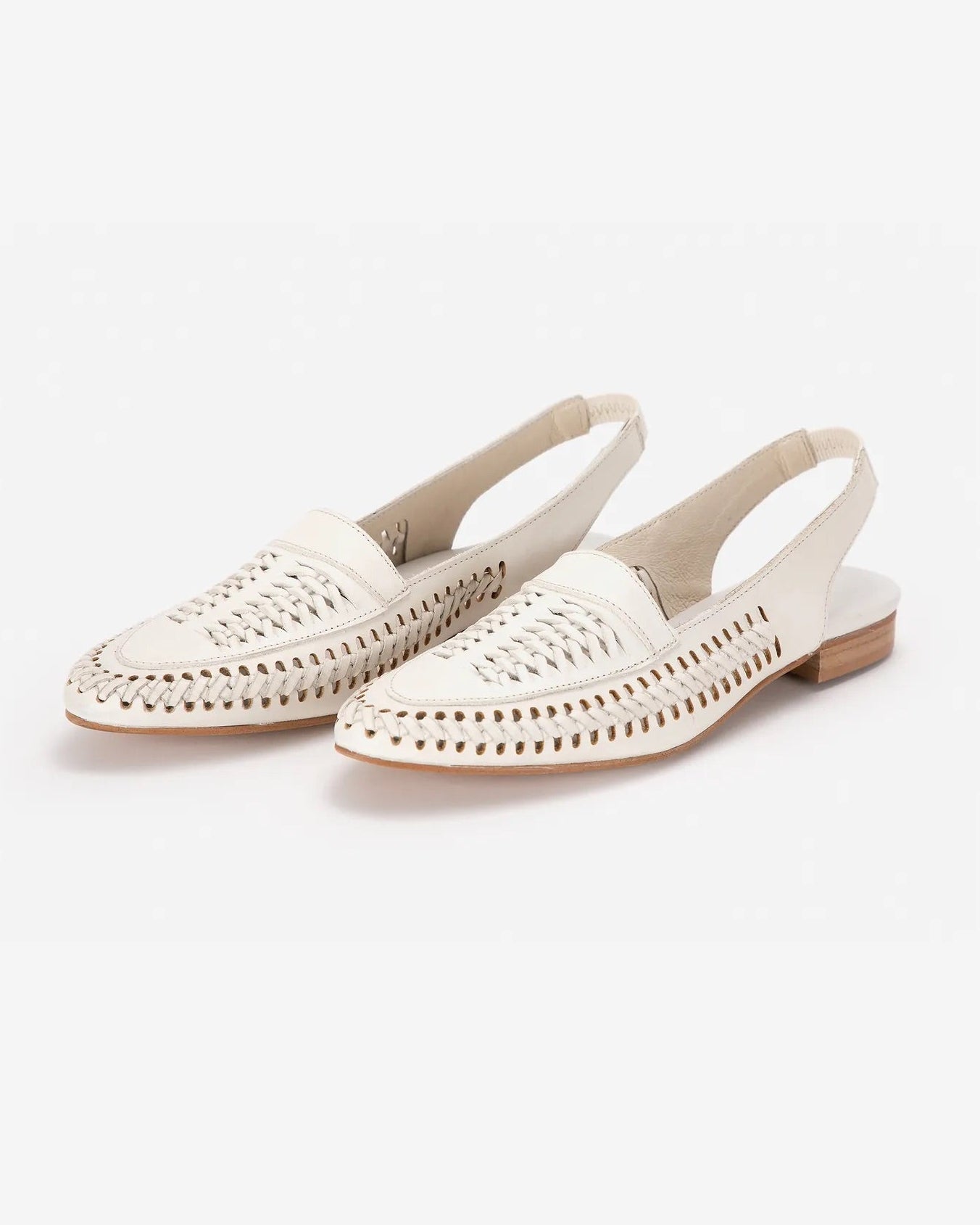 A braided leather slingback flat from Bobo Choses, made in Spain from smooth off-white leather. Designed with a woven front for breathability and texture, and finished with an open slingback heel for an easy, comfortable fit. A low stacked heel makes them ideal for everyday wear.